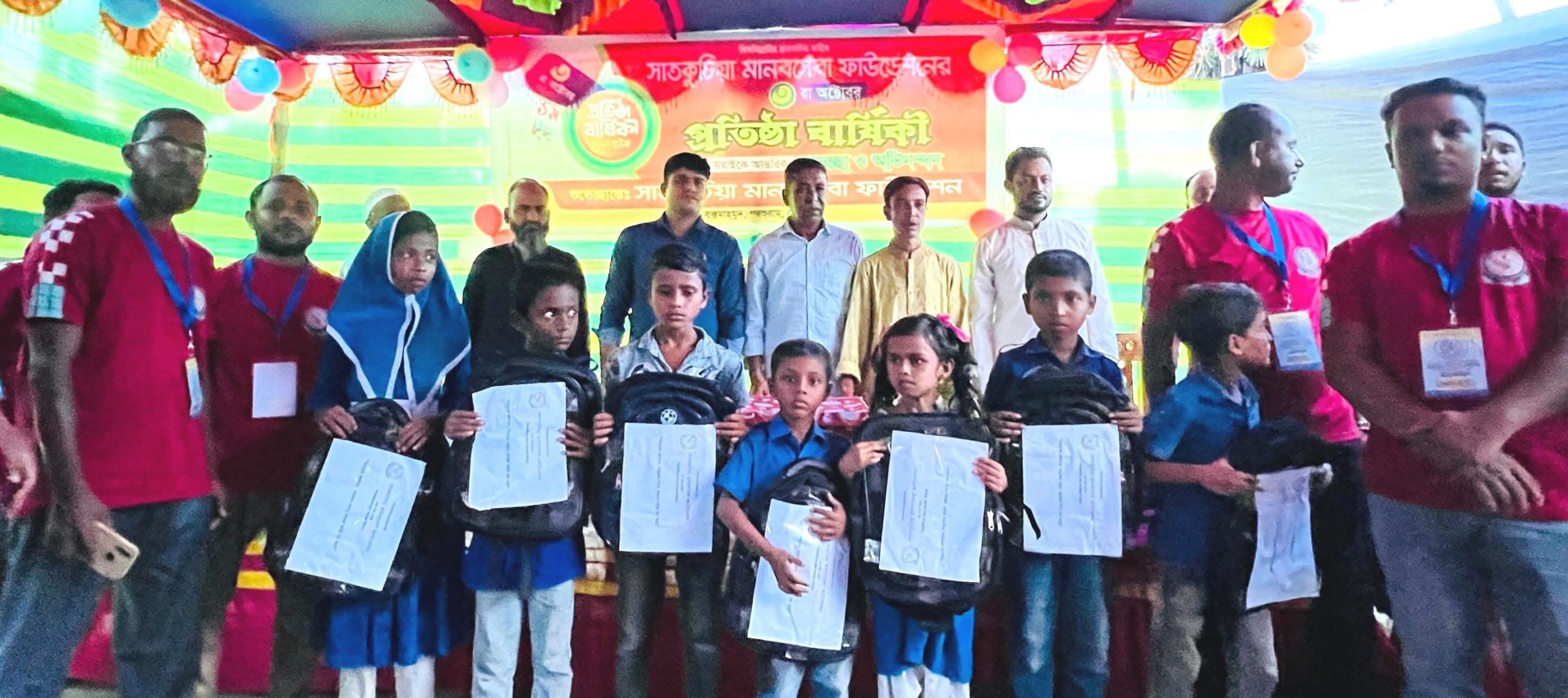 পরশুরামের স্বেচ্ছাসেবী সংগঠন সাতকুচিয়া মানব সেবা ফাউন্ডেশনের প্রথম বর্ষপূর্তিতে দরিদ্র দশ জন শিক্ষার্থীকে স্কুল ব্যাগ উপহার দেওয়া হয়েছে।