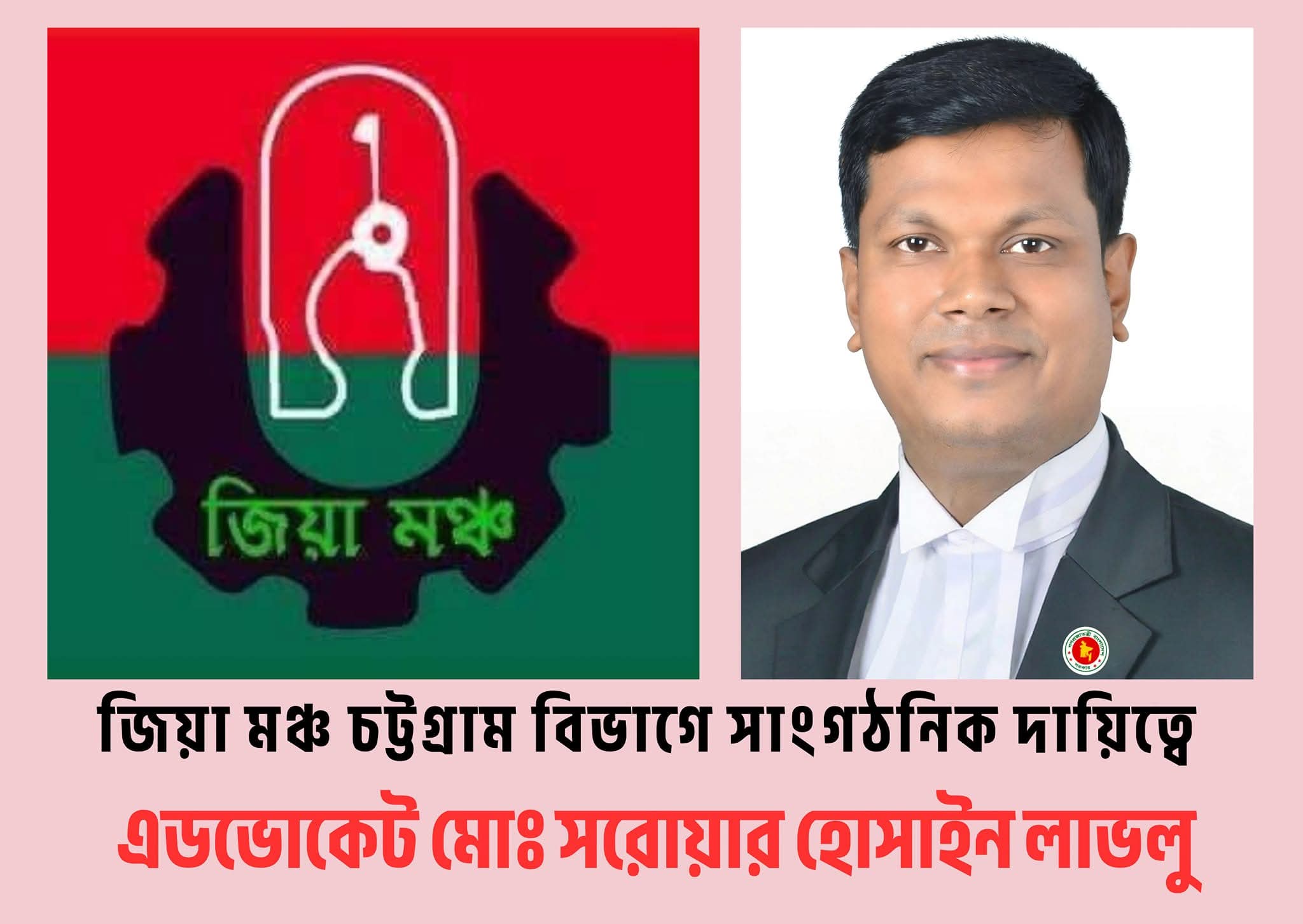 জিয়া মঞ্চ চট্টগ্রাম বিভাগে সাংগঠনিক সম্পাদক এর দায়িত্বে অ্যাডভোকেট মোঃ সরোয়ার হোসাইন লাভলু