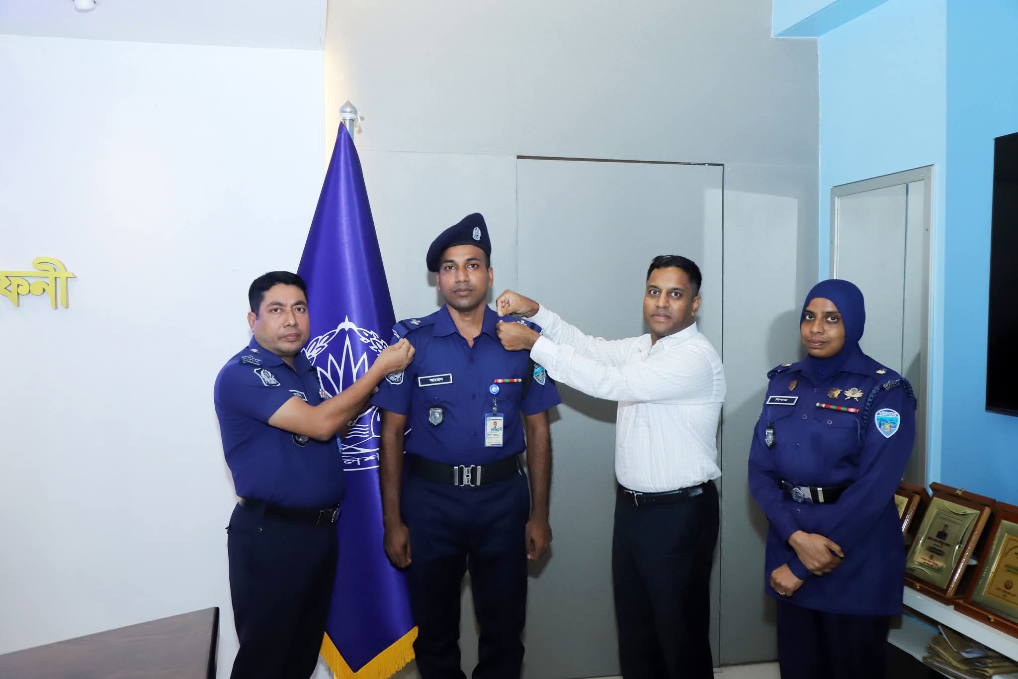 এই সময় তাকে র্যাংক ব্যাজ পরিয়ে দেন ফেনীর পুলিশ সুপার মোঃ হাবিবুর রহমান এবং অতিরিক্ত পুলিশ সুপার (ডিএসবি), মুঃ সাইফুল ইসলাম । এই সময় আরো উপস্থিত ছিলেন অতিরিক্ত পুলিশ সুপার ( সদর সার্কেল ) নিশাত তাবাসসুম ।