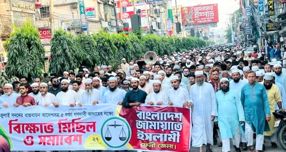 জুলাই সনদের বাস্তবায়ন আদেশসহ ৫ দফা গণদাবি আদায়ের লক্ষ্যে ফেনীতে বিক্ষোভ মিছিল ও সমাবেশ করেছে বাংলাদেশ জামায়াতে ইসলামী ফেনী জেলা।